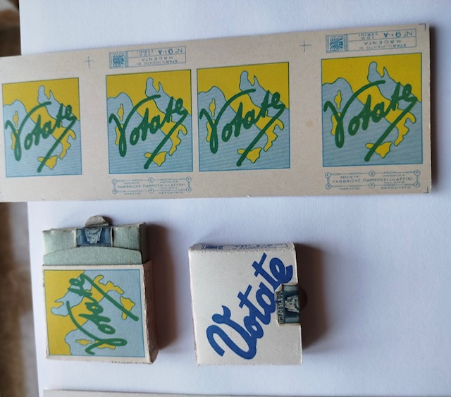 Nel 1946 il Governo provvisorio di allora incaricò la Saffa di produrre 2 tipi di scatole di cerini per invitare gli italiani ad andare a votare per il referendum che doveva decidere se l’Italia doveva essere Repubblica o Regno. Dopo 20 anni di dittatura gli italiani non erano più abituati ad andare a votare. Sulle scatole non era indicato cosa votare ma solamente la parola VOTATE e serviva come mezzo di pubblicità di massa a buon mercato perchè i fiammiferi erano nelle tasche di tutte le persone di ogni rango sociale.